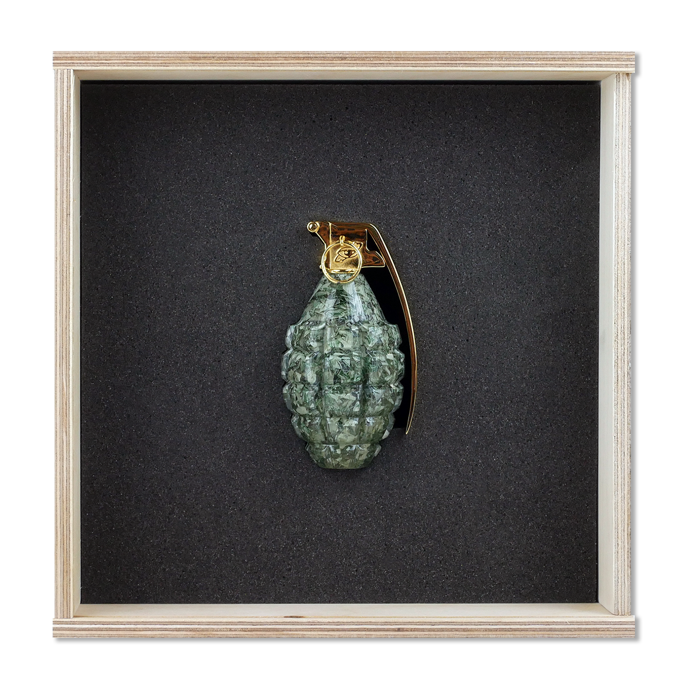 Pressure cast resin hand grenade filled with genuine shredded American dollars....