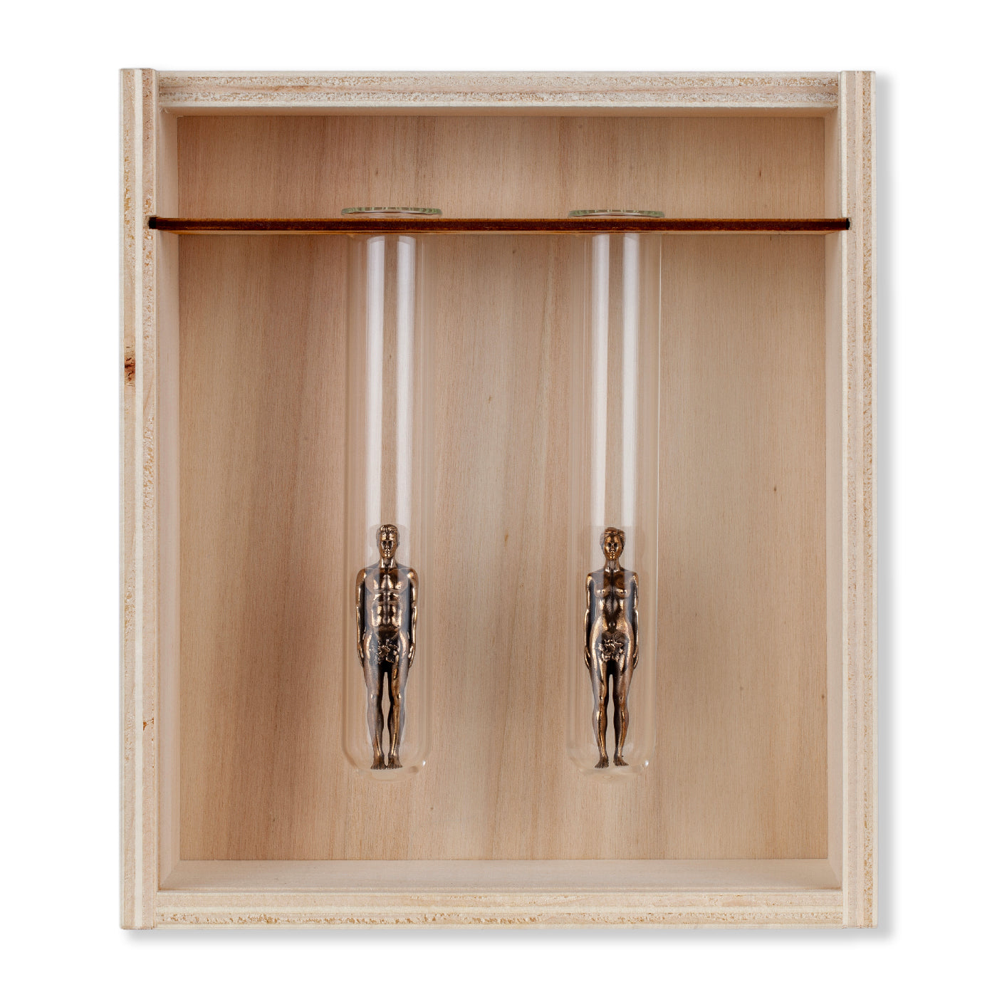 Hand cast resin with foil in custom tray and screen printed plywood...