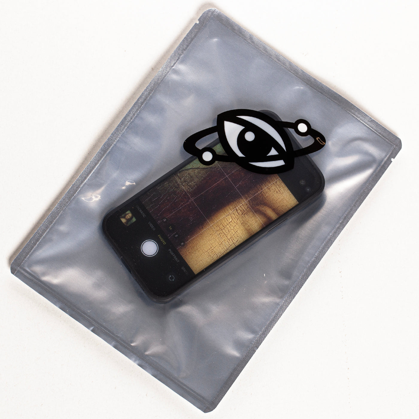 Produced from layers of reverse printed perspex housed inside a silicone iPhone case. Each one is unique, they'll be sent out at random.