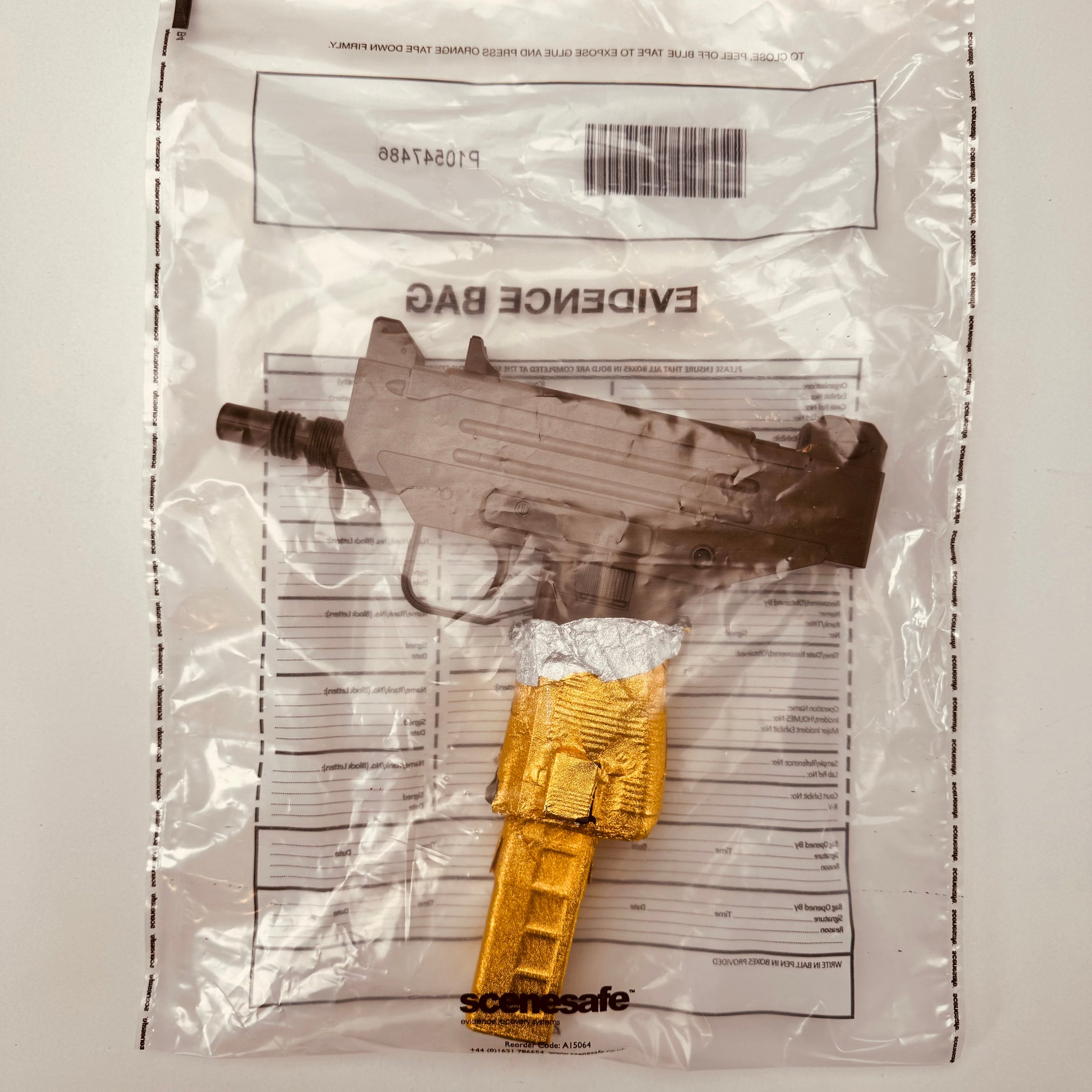Guaranteed to include 1 x test/reject Chocolate Uzi in an evidence bag.