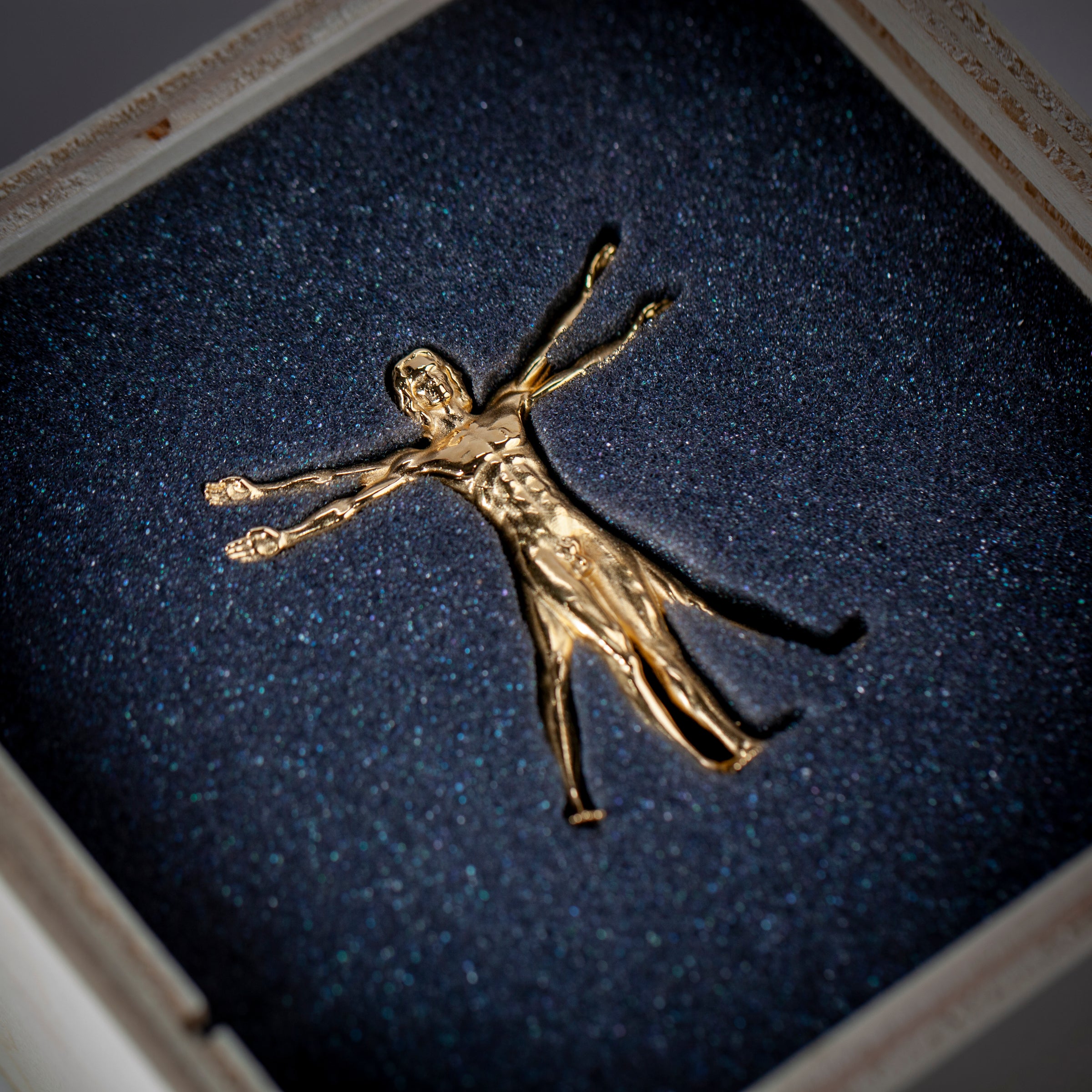 24k gold plated bronze figure with Petri dish in a custom wooden storage and display box. A limited edition of 50 with laser etched edition numbers on the reverse. Each box is hand signed and comes with a mini print and certificate.
